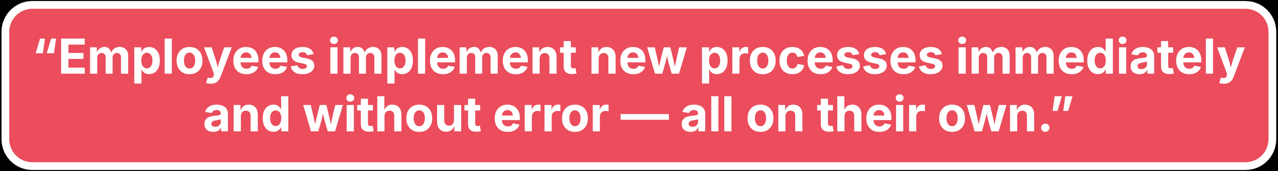 Fehlerfreie Arbeitsabläufe – unabhängig von einzelnen Personen. Wissen jederzeit und überall verfügbar – für alle sofort verständlich und digital abrufbar. 100 % Prozess-Compliance, maximale Sicherheit und Qualitätssicherung. Spürbare Effizienz- und Produktivitätssteigerungen.