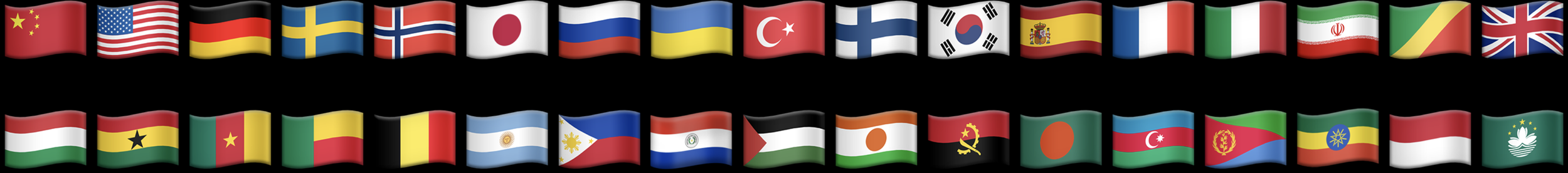🇨🇳🇺🇸🇩🇪🇸🇪🇳🇴🇯🇵🇷🇺🇺🇦🇹🇷🇫🇮🇰🇷🇪🇸🇫🇷🇮🇹🇮🇷🇨🇬🇬🇧