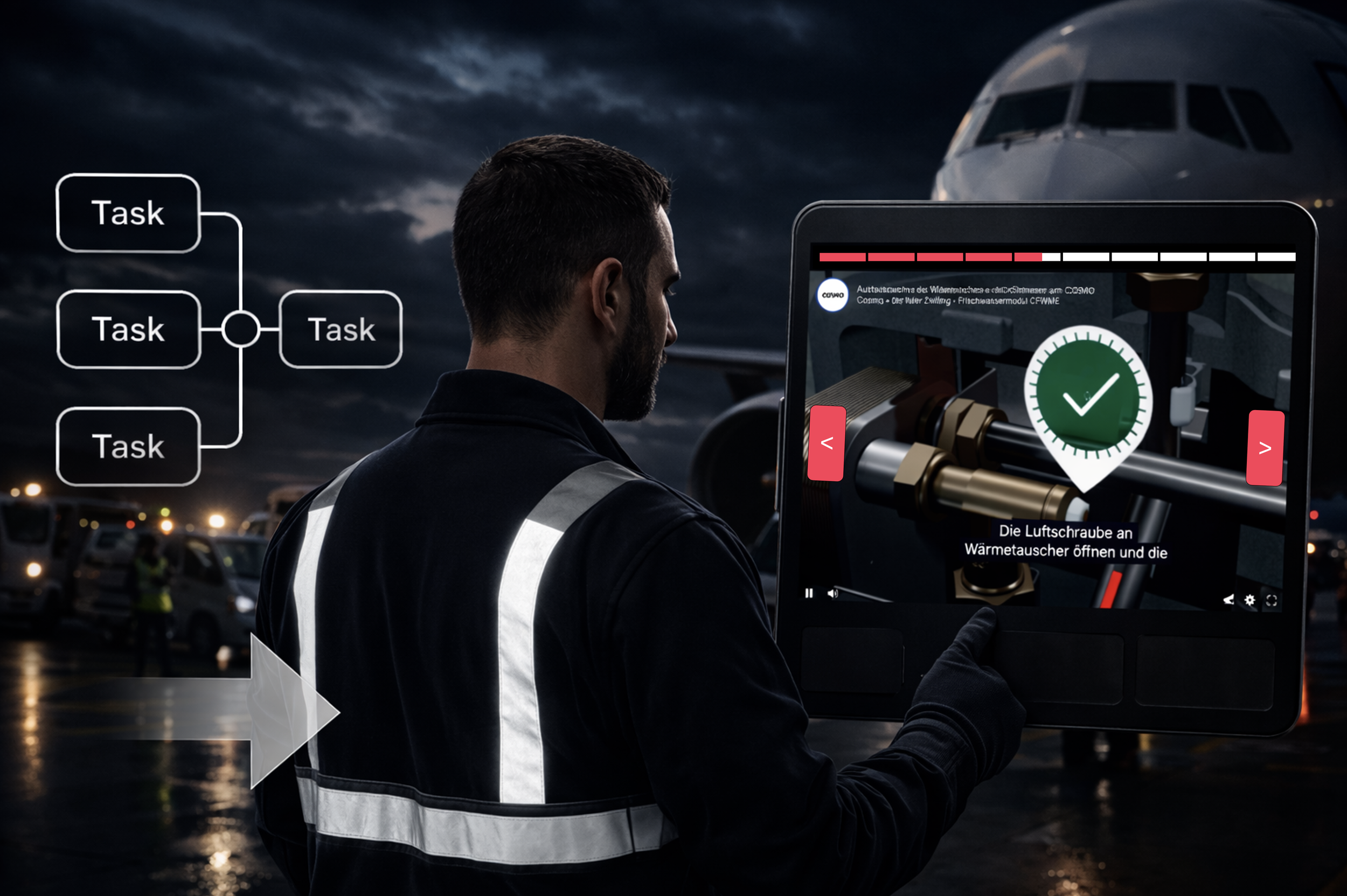 Wissenserfassung Ihrer erfahrensten Mitarbeitenden – in vollständig visualisierte, mehrsprachige und virtuell geführte Schritt-für-Schritt-Anleitungen.